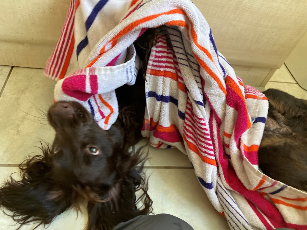 Once she had got her shoe for me and put it back in its rightful place, she picked me up and carried me to the dreaded bath room. Well at least the water was warm for once, and I do enjoy a good roll around with my towel afterwards.